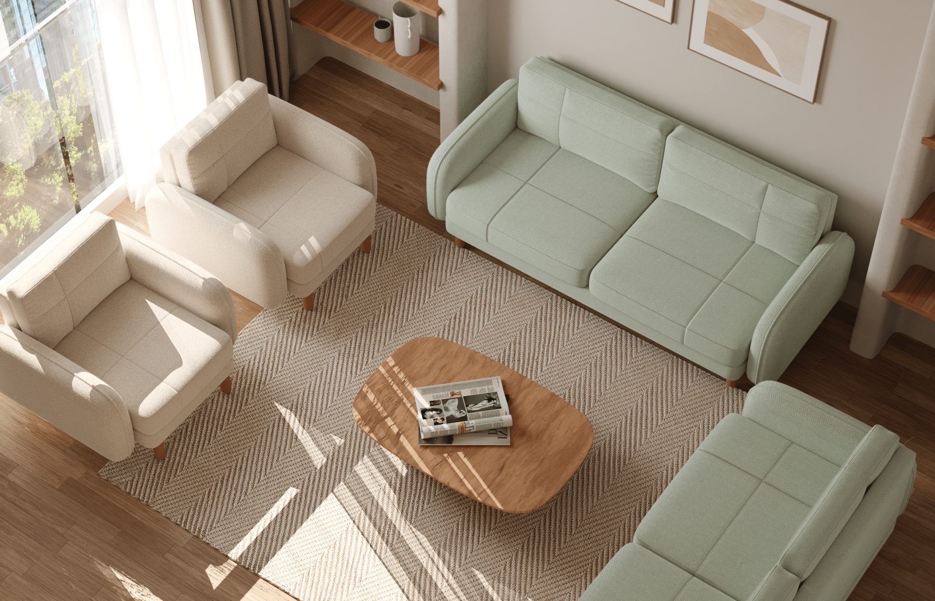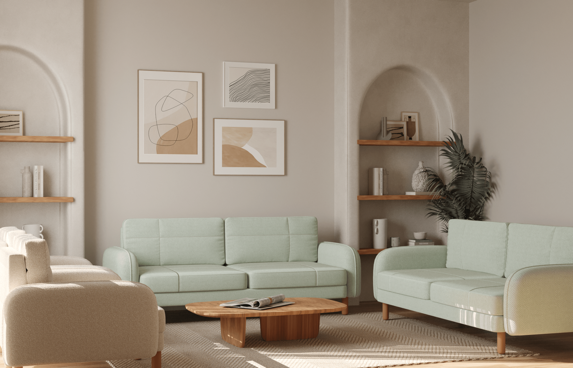 3x3x1x1 Takım - Dikişli - Makro Kadife - Işık Beyazı - Fulya Kadife - Adaçayı Yeşili - Post Modern Kol 2026